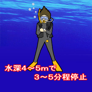なる可能性があるが、エキジット前に水深4~5mで3~5分以上停止をすることで体内の窒素を排出して、減圧症を防ぐために