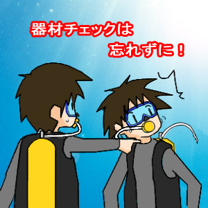 バディチェックとは、エントリーする前に自分のバディの安全チェックをすることです。通常はBC、レギュレーター及び軽器材のチェック、タンクバルブがあいているかをチェックします。また、入水前には、バディのマスクに髪の毛が入っていないかなど細かい部分も手助けてあげましょう。