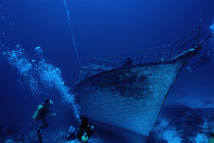 沈没船を見るダイビング。沈没船のことをサンケンシップと言ったりもします。ちなみに意図的に沈められた船は、沈船。