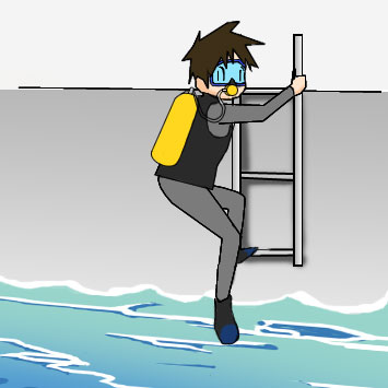 海に入るときのこと。ボートダイビングにおいてはジャイアントエントリー、バックロールエントリー、フロントロールエントリーなどがあり、浜から入ることをビーチエントリーといいます。
