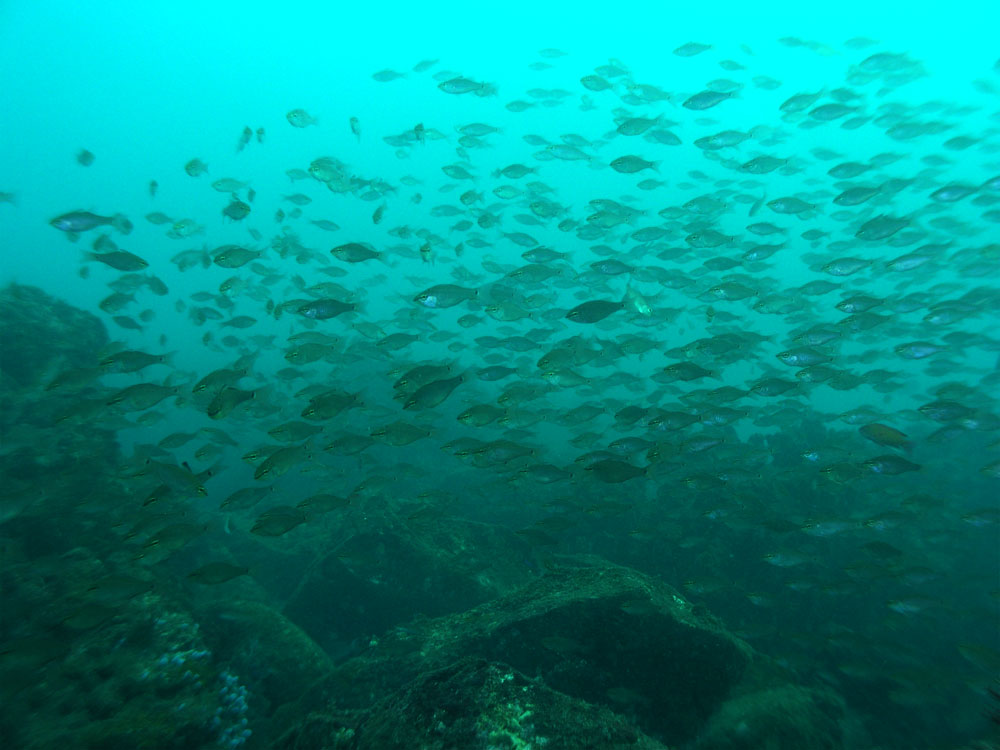 魚の量のこと。魚が多いと魚影が濃いと言います。