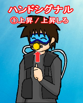 水中でコミュニケーションを図る手段。手を使って定められたサインを出す。