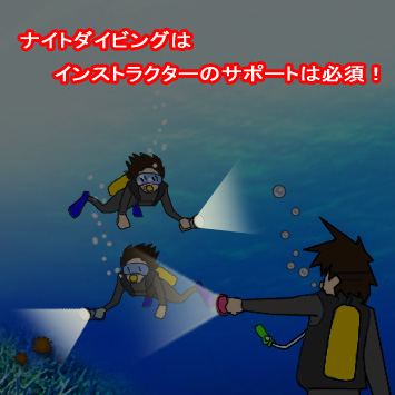 ナイトダイビングはインストラクターのサポートを受けましょう!
