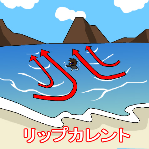斜面のある海岸に連続して波が打ち寄せていること、水位が上がる。ある程度までの水位になるとその水が再び戻ろうとするとき、沖に向かって急激な流れが生じることをリップカレントといいます。浅場やリーフの場所で起こりやすい現象です。このような場所でのエキジットは危険ですので注意しましょう。また、離岸流ともいいます。
