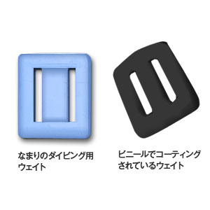 おもりのこと。ダイビングにおいて、1kg、1.5kg、2kgのおもりを使用してウェイトコントロールを行います。。