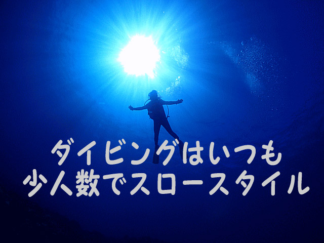 スロースタイルのダイビングを沖縄本島・糸満の海で開催中。少人数制なので初心者やブランクのある方にも安心・安全・快適です。また、リクエストに応じて中城湾・水納島・大浦湾・真栄田岬・辺戸岬まで広い沖縄本島を北から南まで幅広くご案内しています。